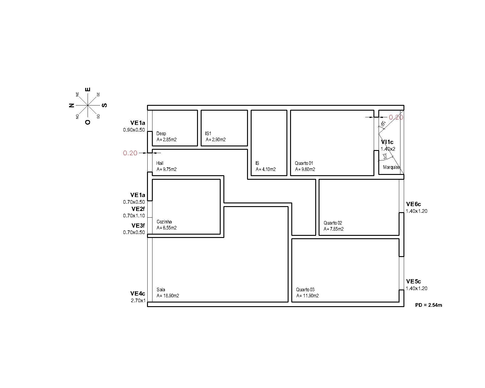 -3 bedrooms, one with a closed balcony